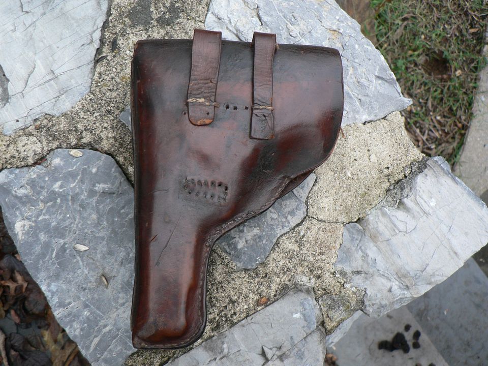 Notice that time has molded the holster to the pistol. You can even see the protruding barrel.