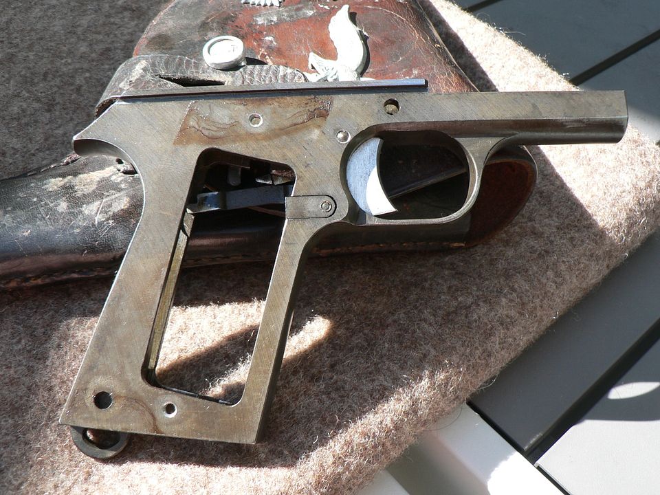Moving on to the frame, here's a detail of the area where the serial number would have been placed, directly beneath the markings on the slide: