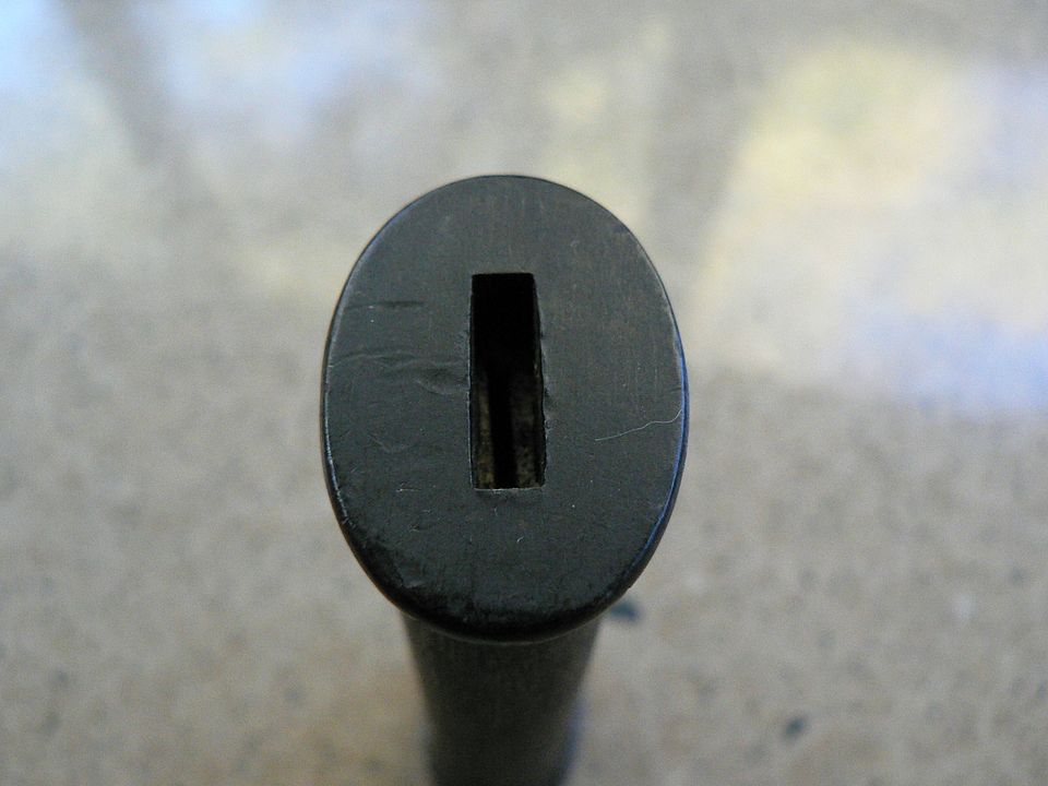 Slotted end marked with several small capital "P"'s :