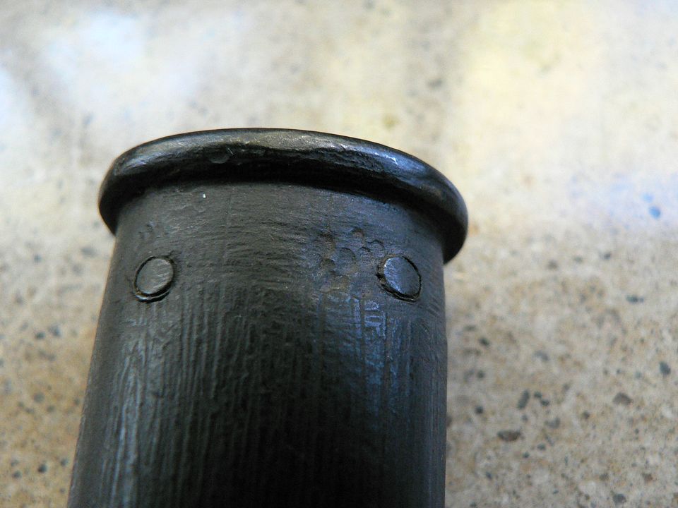 The body of each kit is a piece of sheet steel rolled into an oblong shape and then brazed along the seam where the two ends meet. This seam is slightly visible when the body of the kit is phosphated but invisible when painted. Below are a couple pictures of an older 1874 kit (pre-PA35) left in the white that shows the seam relatively clearly: