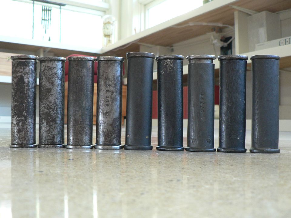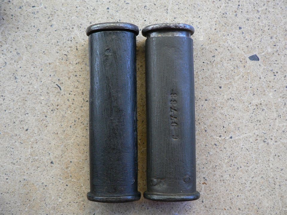 The four on the left are old 1874 kits that could be so old as to be issued with a Gras or new enough to have been issued with a MAS 36. The five on the right are PA 35 kits. Also notice that they are of varying overall lengths and the thickness of the steel on the ends varies as well.