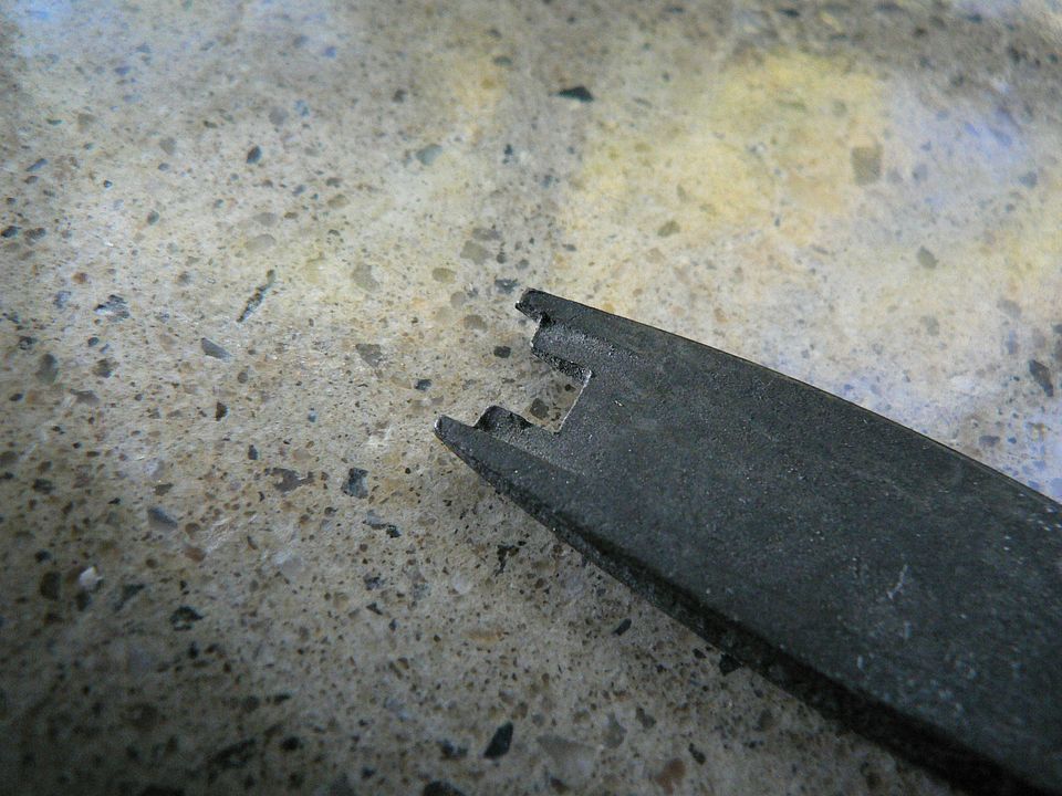 The standard end is used to remove the grip screws. The specialized end is for removing the trigger axle (which also holds the disconnector and magazine safety levers in place) and disassembling the magazine catch. While the markings on the blades vary, the specialized end is finely machined and exactly the same on each blade for obvious reasons. Here's a closeup of the specialized end: