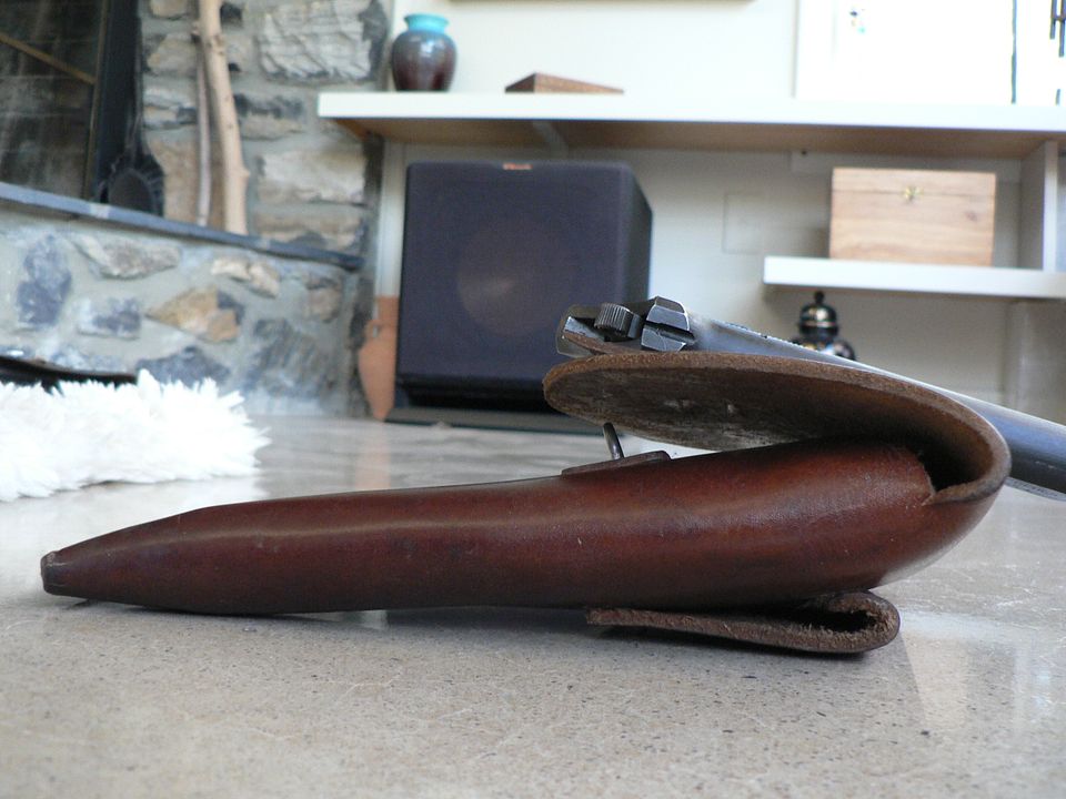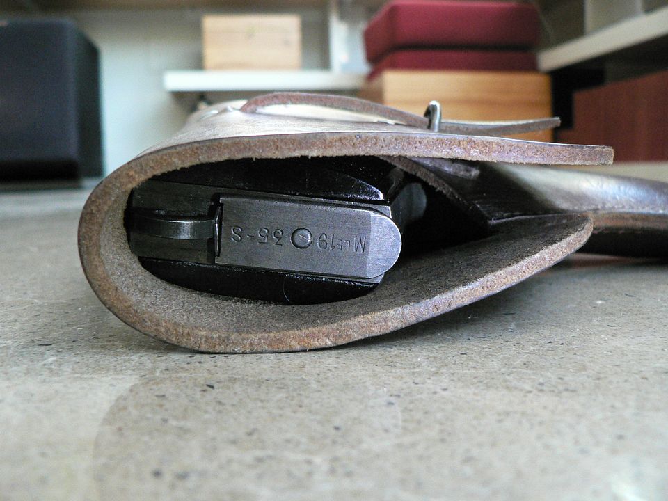 Here, we see a general view of the closed flap with a pistol present in the holster: