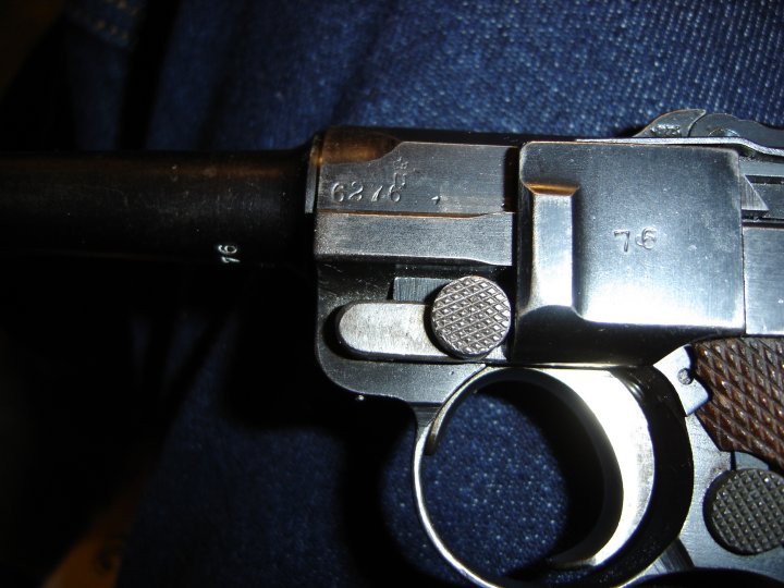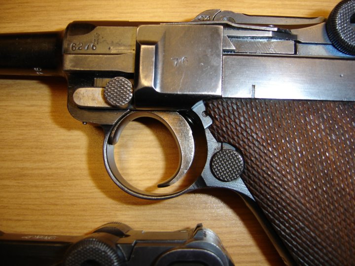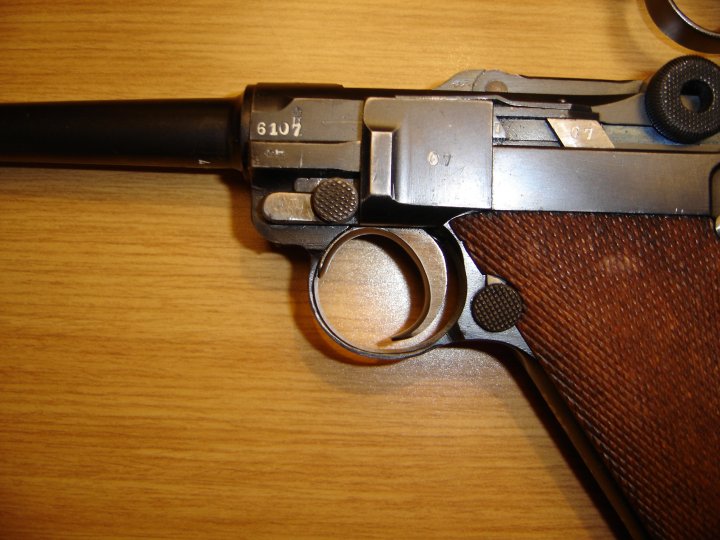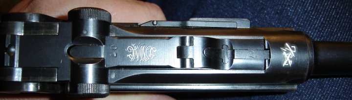You may notice that PL's luger has a crossed out 7.65 on the receiver! This is very rare, and of course uncommon. Although you can't tell, the blueing of the barrel and receiver is a slightly different color.