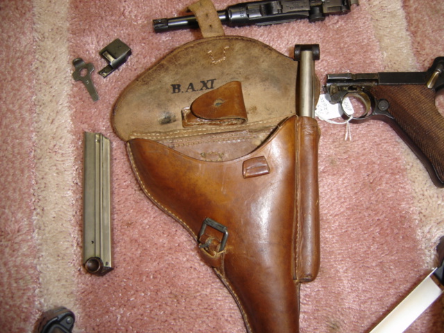 I am glad someone is on his toes.....certainly not me. I was dumb enough to post it under Navy Lugers......Can someone move it here and delete the other one????? Is the marking of some importance or scarcity????? The gun is really nice, doesnt have any grip or grip strap wear, bright bore but holster really worked over the side plate hump. One mag has been broken and poorly repaired. I used a fellow to repair a mag bottom for me but lost track of who it is. Can someone put me back in contact w/him???