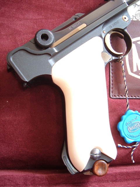 I was so lucky to find these beautiful Mauser ivory grips for Commemorative LP08/P08. These grips are rare for two reasons: