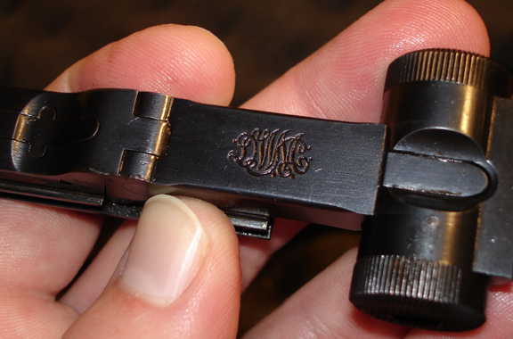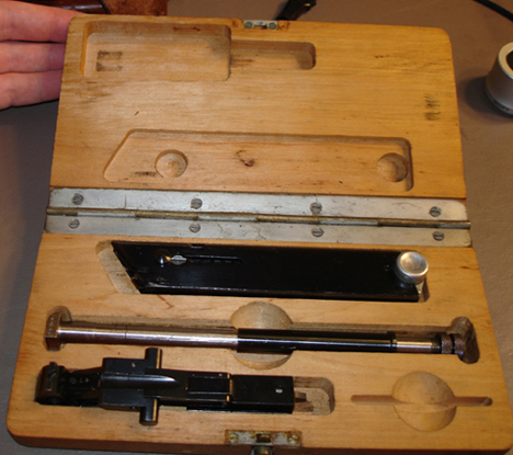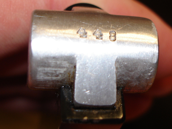 Thanks for all the input. Regarding the conversion kit, the barrel and magazine both have 448 stamped, while the the toggle assembly is numbered 967 (67.) Does this indicate that these parts were not together in the original kit? Also, there is a small part cavity in the kit box which has not had a matching part since I have had the kit. The only other pictures I've found of similar kits show this cavity also being empty, yet in the descriptions of the pictures, no mention is made of anything being missing from the kit. Was there originally some sort of disposable item stored there?