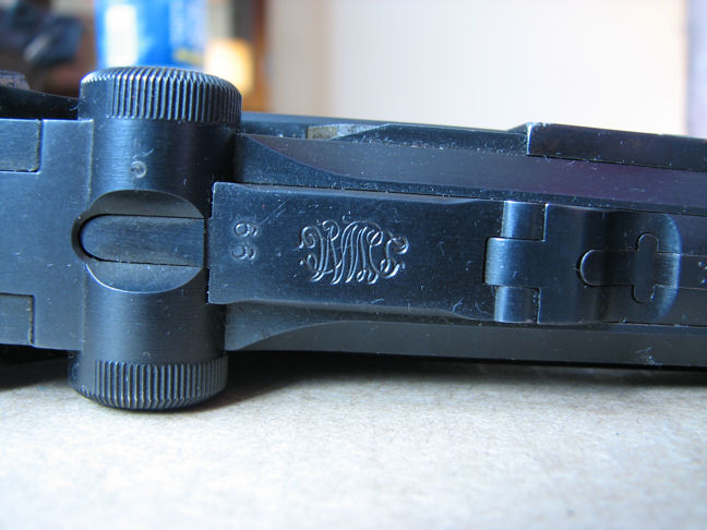 This belongs to a friend of mine. It is a 1914 DWM, with an interesting marking. Carl buys almost all of his lugers from bring back veterans or their families and many of his collection is from years ago.