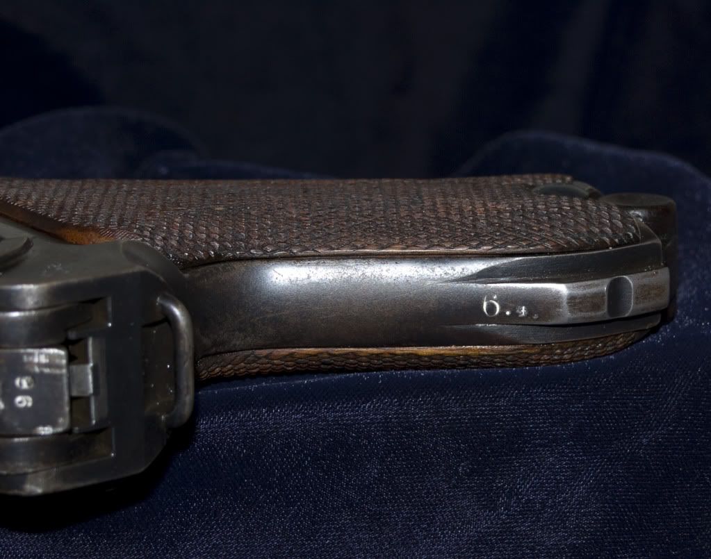 Not many WW1 Lugers were converted to any type of Naval issue. Many WERE converted to Police however. The sear safety and a Police grip strap marking would be two good indicators but yours has neither. The 6.4. above the stock lug is a unit mark but others with more knowledge of that numerical alchemy will have to tell us what that might indicate.