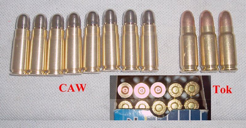 ![]() I don't have a 'real' spring to compare it with, so I don't know how close it is to original as far as thickness of leaves... The cartridges came today; here's two pics of them...hard to get good pics, the auto-focus tracks all over the place... ![]() ![]() ![]() Kind of amusing; the fake primers have the "U" on them...I have them displayed with actual 7.62 Tokarev cartridges [Fiocchi], dimensionally the same as 7.65 Borchardt (for all practical purposes)...The CAW dummy cartridges are heavier; I wonder if they are solid brass??? Edit1: A couple of natural light pics with paint removed...