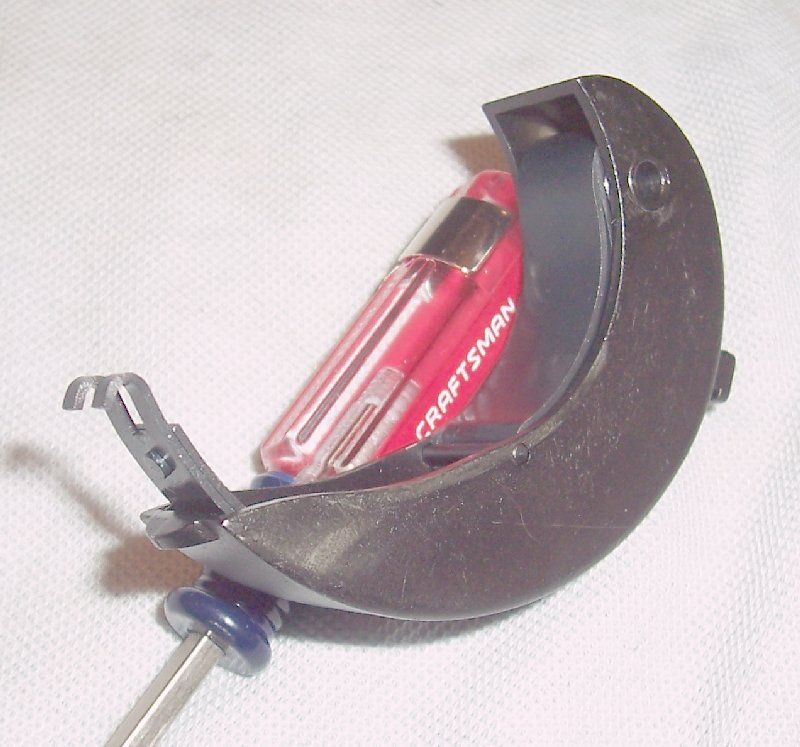 I had to field strip it to scrub the muzzle paint off, so here is a pic of the springbox with 2-leaf 'snail' spring in it...