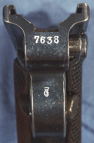 An Erfurt-manufactured frame will have an inspector's mark on the front of the trigger guard:
