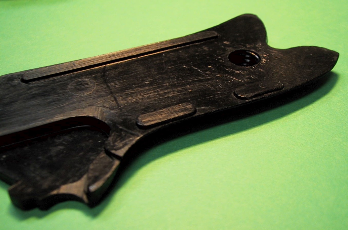 The one with the â??reverse 3â? is the Russian extractor. It is the frame safety marking that is the same on both the Bulgarian and Russian Lugers. The frame inscription is in Bulgarian, therefore is meaningless in Russian (although I have heard that prior to 1920 the Cyrillic alphabet was the same for Russian and Bulgarian, so perhaps the safety marking would be the same). The interesting thing about these â??safetyâ? markings is that unlike other Lugers that are really on safe when the marking is showing, it is the reverse situation on the Russian and Bulgarian Luger since the marking means â??fireâ? and it is only on â??safeâ? when the marking is covered!