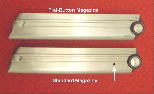 I am sorry to have added to your confusion. The flat-button magazine is required for the very early 1900 frames that have no groove or â??reliefâ? for the magazine follower button. The flat button was threaded and screwed into the magazine follower. The buttons tended to work loose and either made it difficult to put the magazine in the gun or the button could come out and be lost. It was also very difficult to depress this small thin button to load the magazine. To overcome these problems, a raised follower button was designed to make loading easier and, rather than being threaded, the button was an interference fit into the follower and further secured by â??stakingâ? (expanding the button stud like a rivet) through a hole in the opposite side of the magazine. This new design button was also easier to use with the loading tool. Many of the early frames were re-machined, or â??relievedâ?, to allow use of this new type magazine, so an early Luger with an un-relieved frame is somewhat rare.