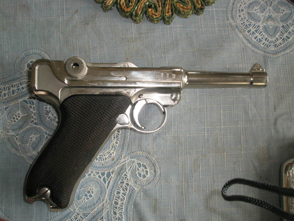 When I was a kid, the first two guns I learned to shoot had both been used to shoot my father. The first was a Nambu pistol he got off the body of a Japanese major near Munda Field. Dad's wound was just a scratch, barely enough for the Purple Heart, but he shot the major with his Thompson, getting both the Nambu and a sword. The second was a Type 99 rifle he got in the Phillipines. That put him in a field hospital and he earned a second Purple Heart, but not a trip home. His sergeant shot the soldier with the rifle, picked it up and gave it to Dad. When the war ended they had a short layover occupying Japan then shipped home. He was an officer, so he was able to ship both the guns, plus ammunition, the sword and some other souvinier, back to the states. He tried to ship his Thompson back, but it was confiscated. I still have the sword, a book the major was carrying, a battle flag, and the Type 99's bayonet. Dad stayed in the military, and gave both the Nambu and the rifle to his former sergeant when we were shipped overseas to Japan in '59. He did keep his 1911a1 the whole time, and I still have that. Dad never said anything about how he came to have the two guns, or much else about the war. It was the sergeant who told me where they came from some years later when he was visiting us. <Official Luger content:> My mother-in-law has a unit marked 1916 dated DWM P08 brought back from the ETO by my father-in-law. Since he was part of the 8th Air Force in England, we can only assume he traded for it or bought it.