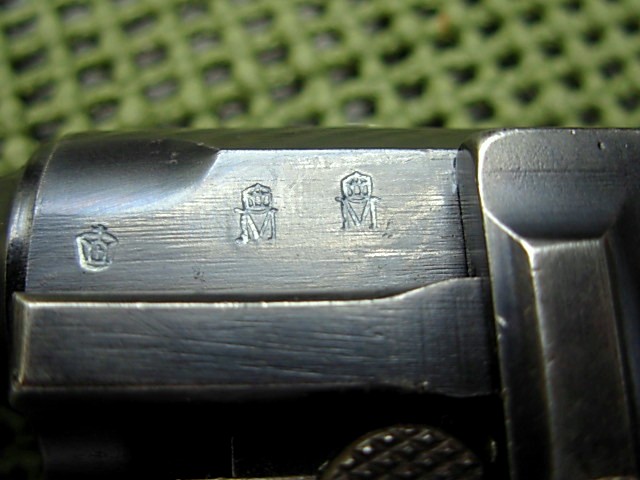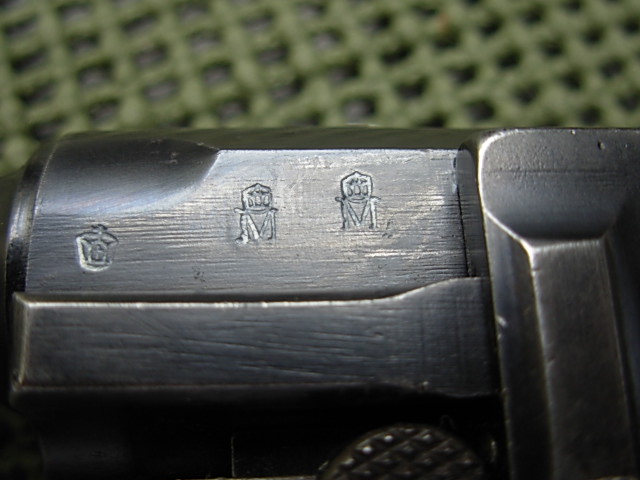 " IMPERIAL NAVY C/Ms The following paragraph noting the observed differences in the Imperial Navy C/Ms is based on limited observations. Any corrections, criticism or additions would be greatly appreciated. Thanks Jan Based on the examination of Imperial Navy Lugers there are differences in the C/M inspection stamps. The 1904 and early 1906 Variations (up to between serial number 790a and 7909a) have what collectors have termed a â??three lobeâ? style stamp (three lobes in the crown). The later 1906 Variation, the 1908, 1914, 1908 Navy Commercial and P08 Variations have what collectors have termed the â??pentagonâ? style stamp (a pentagon shape with cross, in the crown). These two stamp styles may be mixed on the early1906 Variation, with three lobe and pentagon style inspection stamps being applied to the same Luger. The three lobe stamps have the crown slightly above the M on the 1904 and first1906 production. Later 1906 production has the three lobe stamp tighter to the M. Even later 1906 production has the pentagon style C/M with the crown closer to the M as does the 1908 Variation. Observed 1916 and 1917 dated, and 1908 Navy Commercial and P08 Variations have the Crown tight to the M. " |